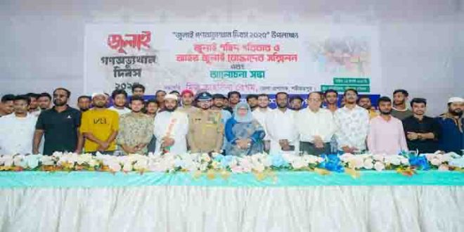 শরীয়তপুর জেলা প্রশাসনের আয়োজনে জুলাই গণঅভ্যুত্থান দিবস ২০২৫ পালিত হয়েছে। দিবসটি উপলক্ষে শরীয়তপুর পৌরসভা অডিটোরিয়ামে দুপুর ১২ টায় বৈষম্যবিরোধী ছাত্র আন্দোলন, জুলাই বিপ্লবে জুলাই শহীদ ও জুলাই আহত যোদ্ধাদের সম্মেলন ও আলোচনা সভা অনুষ্ঠিত হয়।