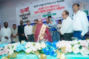 সরকারের প্রতিনিধি ও অনুষ্ঠানের সভাপতি হিসেবে সংবর্ধনা প্রদান করেন জেলা প্রশাসক তাহসিনা বেগম।